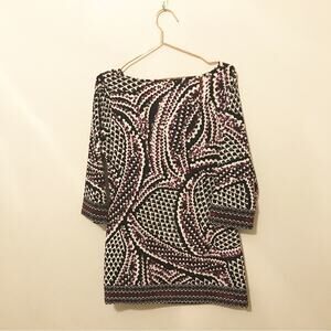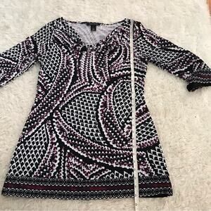 Elevate your wardrobe with this stunning White House Black Market tunic top. The multicolor design adds a vibrant touch, making it perfect for any occasion. Crafted with high-quality materials, this tunic offers both style and comfort. The flattering fit and unique pattern make it a standout piece. Pair it with your favorite jeans or leggings for a chic and effortless look.