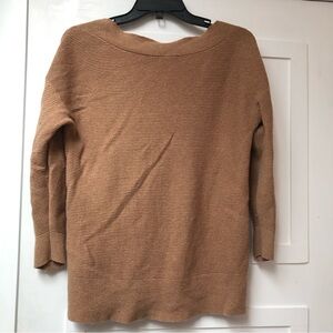 White House Black Market wool cotton blend deep v neck ribbed camel sweater S