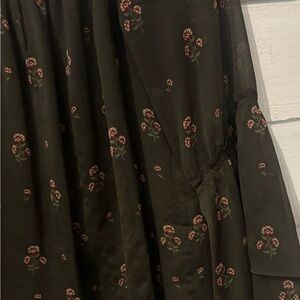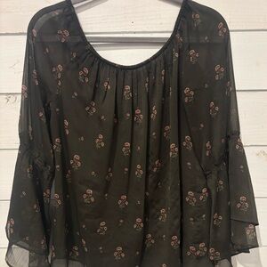 White House Black Market Bell Sleeve Olive Green Floral Sheer Blouse Top -Medium