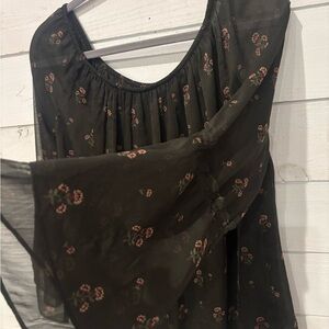Sleeve Dark Olive Green Floral Sheer Blouse Top in size medium