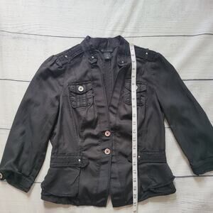 White House Black Market Size 6 Black Button Jacket Silver Button Detail