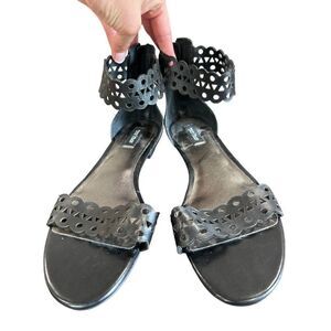 White House Black Market WHBM Black Leather Zip Up Sandals Size 11