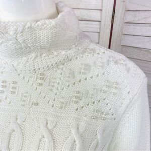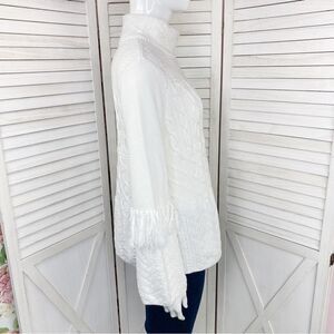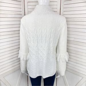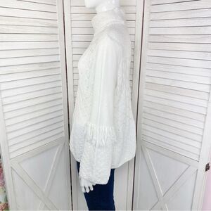 White House Black Market Boho Fringe Sleeve Mock Neck Sweater White Medium