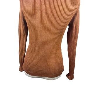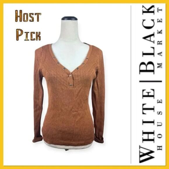 Stylish V-neck sweater. Ribbed texture. Button details on neckline. Perfect for layering.