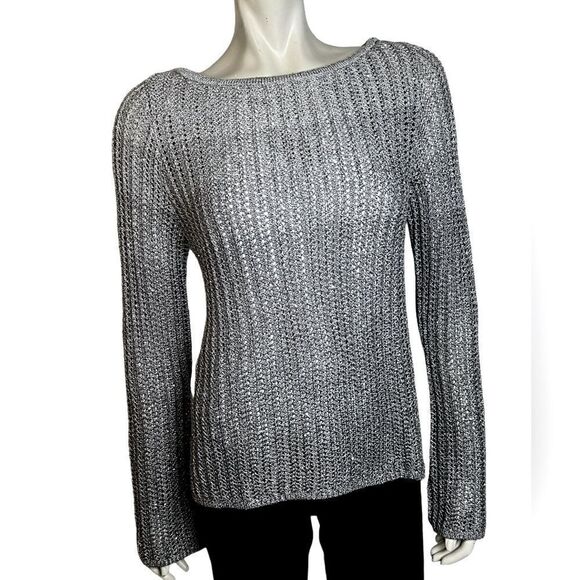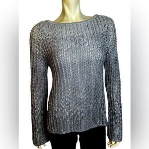 White House Black Market NWOT L/S Ombré Silver Sequined Sweater Size Medium