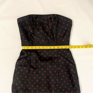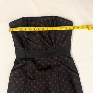 White House Black Market Strapless Elegant Black and Red Polka Dot Dress Size 2
