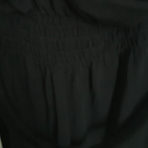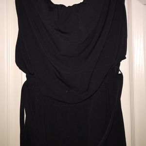 White House black market black strapless dress with loose top stretchy waist band and tie at the waist. Perfect cocktail dress!