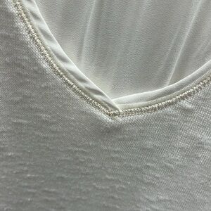 White House black market long sleeve white blouse w/ silver beading v neck- m