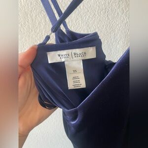 White House black market navy blue velvet spaghetti strap mini dress