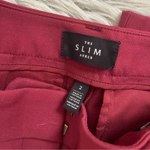 Size 2. The slim ankle fit. Pockets in front and back. Perfect condition. Maroon color.
