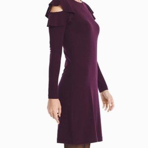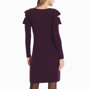 White House black market ruffle cold shoulder sheath dress Large cabernet color