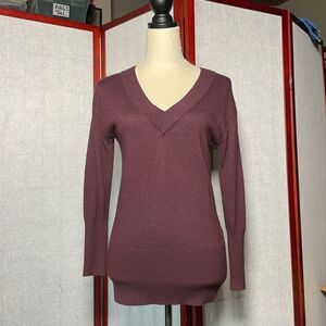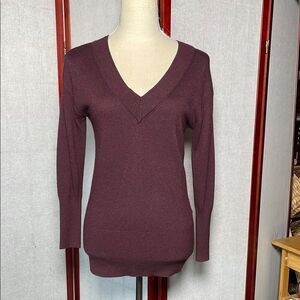 White House Black Market Elegant Plum Colored V-Neck Sweater (Size: XXS)