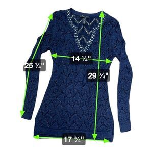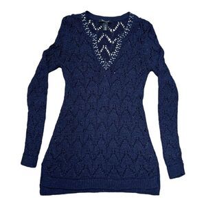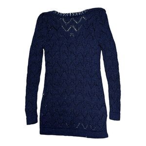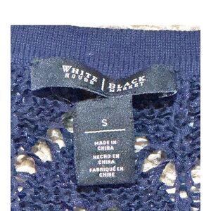 White House Black Market Navy Blue Knit Sweater Small Crochet Long Sleeve