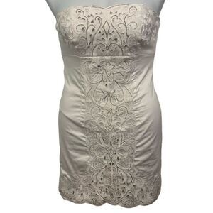 White House Black Market White Strapless Dress with Beaded Lace Bodice. Size 8.