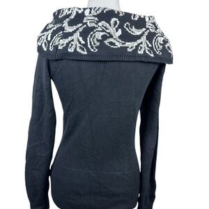 White House Black Market off the shoulder black scroll print sweater Xsmall
