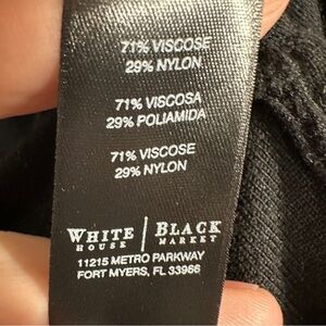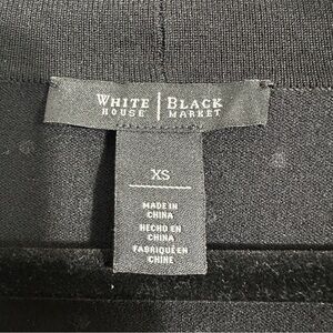 White House/Black Market cropped bolero shrug, black, size XS. Embellished with black sparkly stones. Elbow length sleeves, open front. 71% viscose/29% nylon.