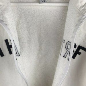 Stay cozy and stylish with this white zip-up hoodie featuring 'I Heart SF' lettering. Perfect for casual outings.