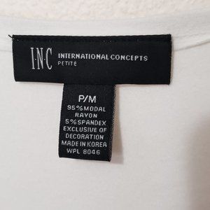 White INC Stretch Tee Shirt With Sequined Neckline Size Petite Medium