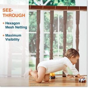 Ensure your child's safety with the Indoor Railing Safety Net. This white safety net is designed to be soft, sturdy, and easy to install, providing extra security for your home.