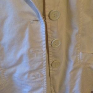 It's a white fancy jacket. Medium. It has little tears on the button holes but they can't be seen when it's buttoned. Comes with a free necklace of your choice from my closet. :)