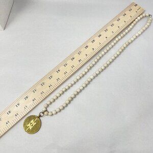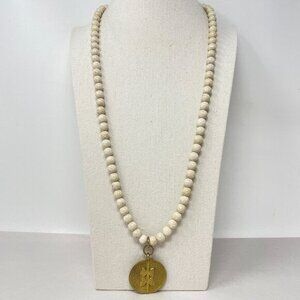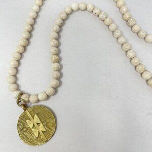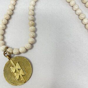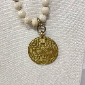 White Jasper Stone Bead Pendant Necklace Gold-Tone Geometric Medallion