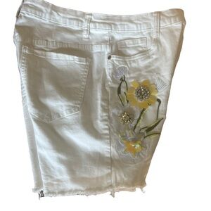 White Jean Shorts with Floral Appliqué Size 6, Boston Proper. In like new condition.