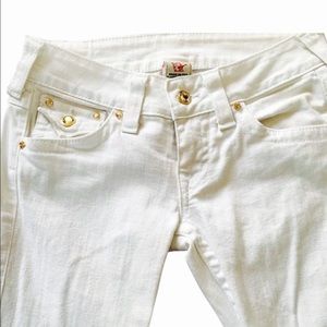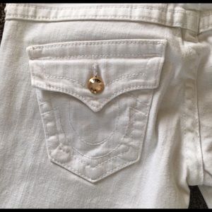 Great fitting white Jeans with gold buttons .. GREAT condition. Very well taken care of.. Great staple item for every closet
