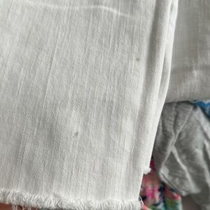 Unfinished hem, straight leg, distressed knees. In great condition. Have a good amount of stretch. 2 tiny stains on back of one leg.