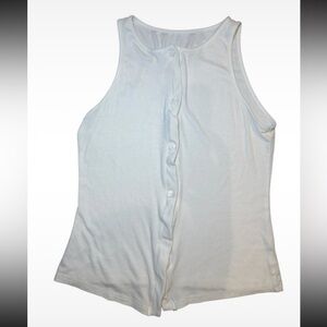 Stylish white button-up top that features a rounded neckline. Perfect for casual wear or office wear.