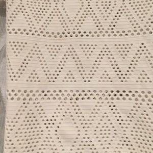 Jersey style crop top with short sleeves. A little bit see through but I've always just worn a tan bra underneath it and it's never been a problem. Stretchy, so could fit medium-large