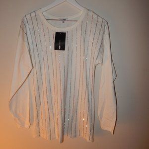 White. Striped Iridescent Jewels. Long Sleeve. Never Worn.