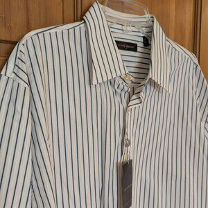 White Joseph Abboud button down cotton shirt with blue stripes size XL NWT