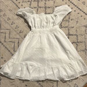 Charming white kids dress with delicate ruffle details. Perfect for any special occasion.
