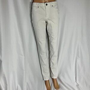 Pre-owned white jean / jeggings in surprisingly good condition. They are mid-rise, straight or maybe tapered leg (see pic 2) and pretty comfortable to wear.
