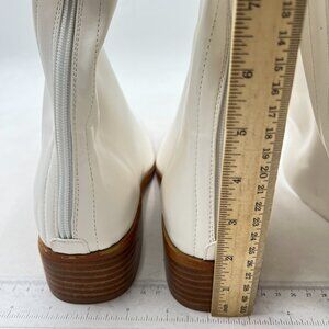 White Knee High Boot Almond Toe Mid Calf Booties for Women Chunky Heel Work Boot
