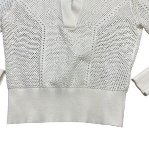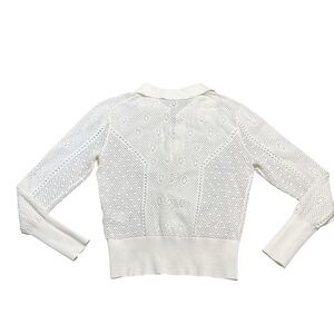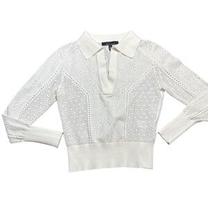 Elegant white knit sweater with a classic collar.