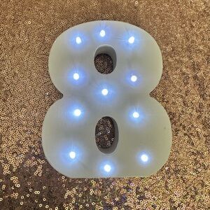 Illuminate your celebrations with this stylish white LED marquee number light. Perfect for adding a touch of elegance to any party decor.