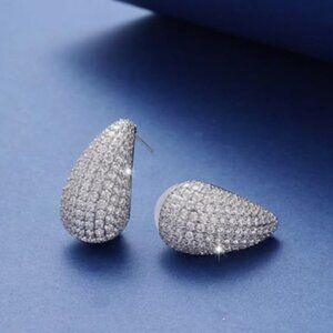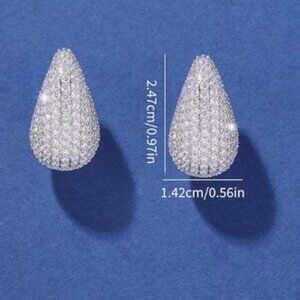 White Lab-Created Sapphire Teardrop Drop Earrings, Sterling Silver Plated Earrings