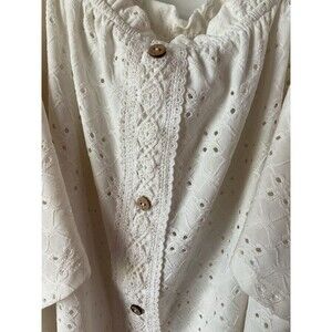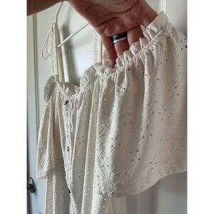 White Lace Eyelet Cold Shoulder Top Ruffle 2X XXL Naïf Blouse Shirt Women’s Plus