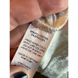The product is a women's plus size white lace eyelet blouse with ruffle accents from the brand Naif. This cold shoulder top is designed in a XXL (2X) size and is perfect for a stylish and feminine look. Made from delicate lace fabric, this blouse is a versatile and elegant addition to any woman's wardrobe.