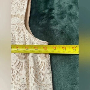 Introducing the epitome of feminine charm: a White Lace Halter Mini Dress in a size extra Small. This enchanting dress features delicate lace detailing and a flattering halter neckline, exuding both elegance and allure. In excellent used condition, it promises a flawless look for any occasion. Whether you're attending a garden party or a romantic date night, this dress is sure to make a statement. Plus, take advantage of a 20% discount when you bundle with other select items, making it easier than ever to elevate your wardrobe with timeless pieces.