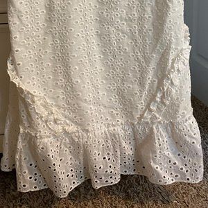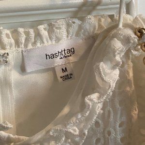 White lace Hashttag dress with tie straps. The ties have gold beads. Only worn once. Great condition. Zips up the back.