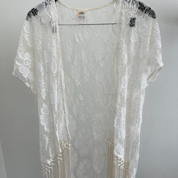 White Lace Kimono with Fringe Small Honolua Wahine