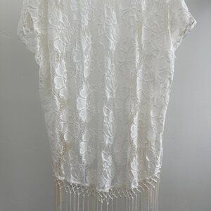 White Lace Kimono with Fringe
