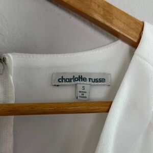 Elegant mini dress with intricate lace skirt. Sleeveless design with a deep V-neckline. Perfect for special occasions.