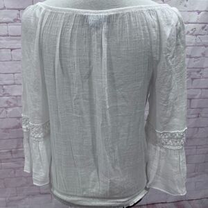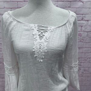 White Lace Peasant Top Blouse 3/4 Sleeve Bohemian Off Shoulder Casual