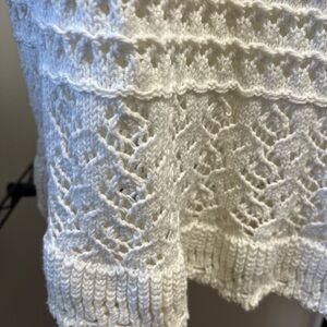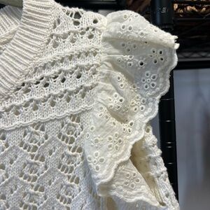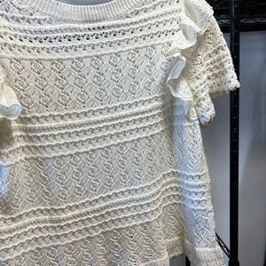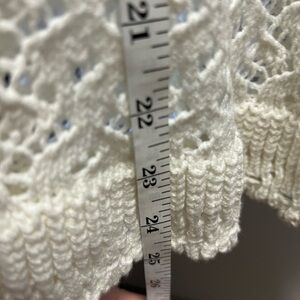 Elevate your style with the White Lace Ruffle Top. This elegant piece features intricate lace detailing and charming ruffle sleeves, perfect for any occasion. Sweater material. Great shape! Size XL (tag on size removed) absolutely perfect for any occasion!