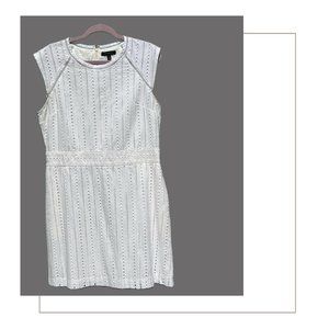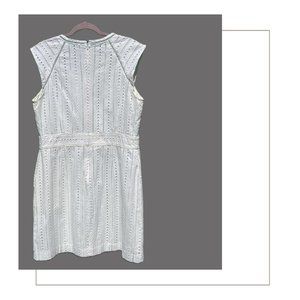 Make a statement in our crisp cotton fit-and-flare dress, showcasing intricate eyelet lace for a touch of delicate charm and practical pockets for added functionality.