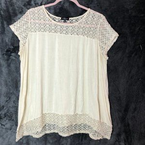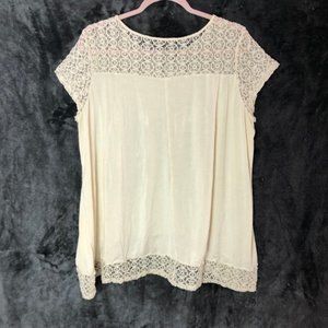 White Lace Sleeve Yolk & Hem Top Size 2x