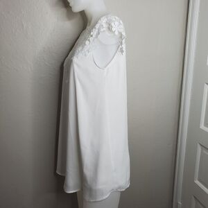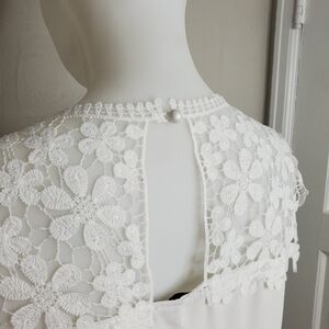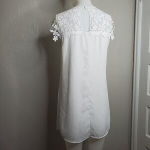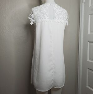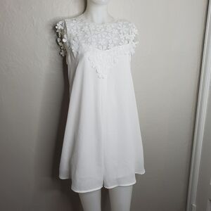 Adorable, white dress by Shein. Top portion is lace like with floral pattern. In good preowned condition.